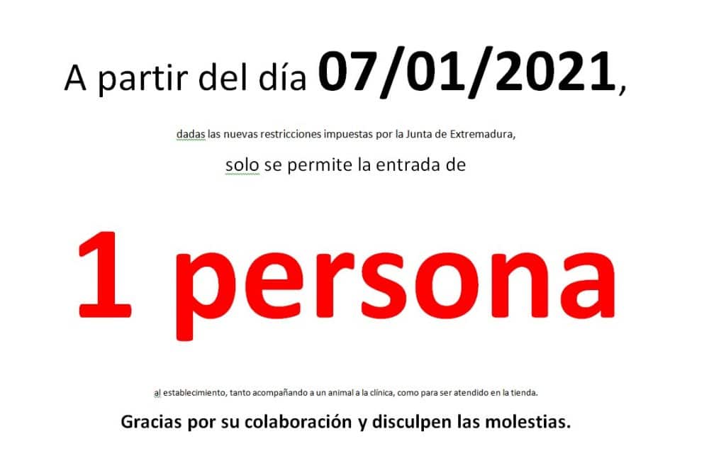Ante las nuevas restricciones por parte de la Junta de Extremadura, se reduce nuevamente el aforo de la clínica y de la tienda.