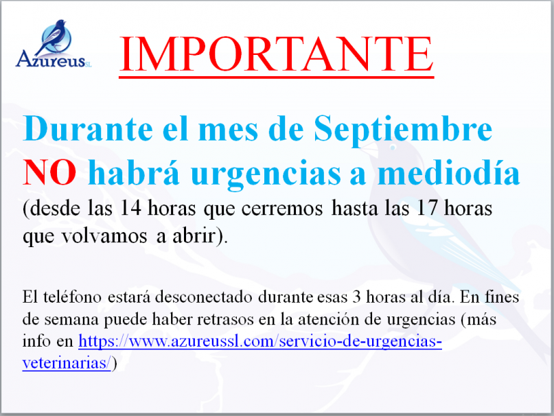 Importante: durante el mes de Septiembre no habrá urgencias a mediodía. Más info aquí… Leer más
