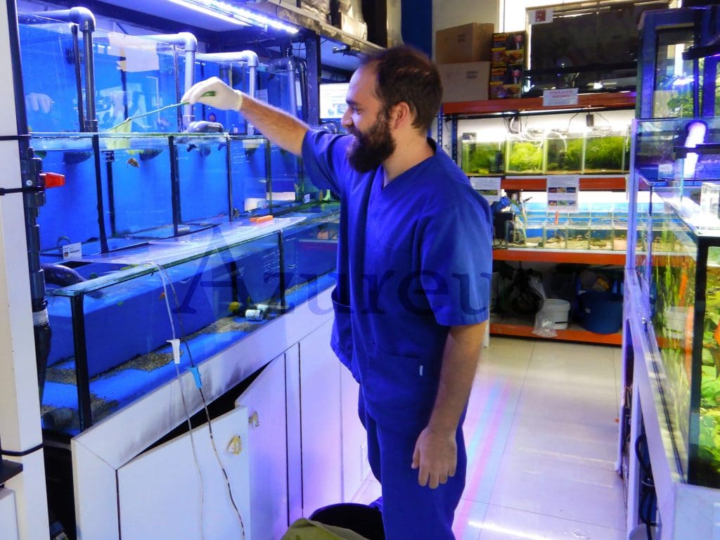 Esta mañana nos han llegado pedidos descomunales de todo. David y Jorge, los compis de la parte de tienda, se han puesto manos a la obra desde bien tempranito para tener todo listo. Los pececillos y gambas necesitan una aclimatación lenta y un trato delicado tras la llegada. Las plantas… ¡ay, las plantas! Nos hemos pasado pidiendo, y casi no nos entran en los acuarios que tenemos destinados a ellas 😀