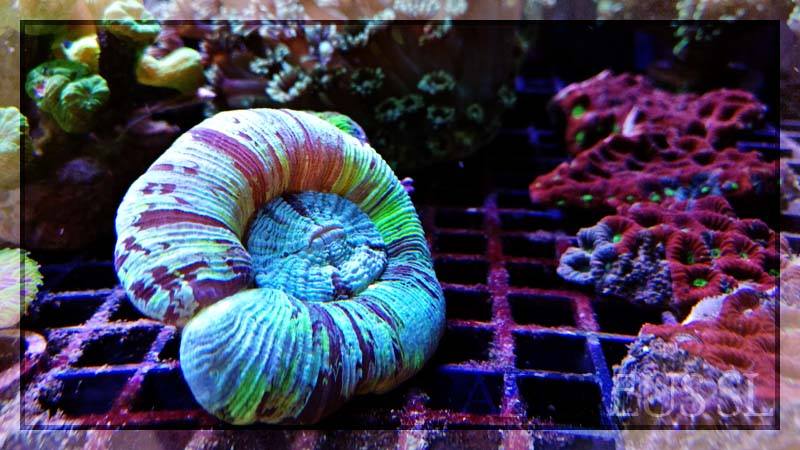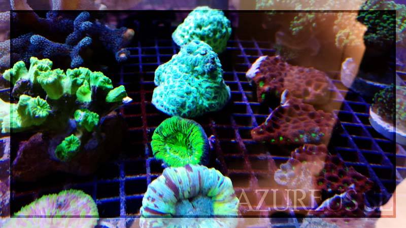 Una trachyphyllia verde ultra en vías de expandirse. Acaban de llegar, fijaros que las dos piezas verdes de detrás son las gonioporas que aparecen hinchadas en la otra foto media hora después :O