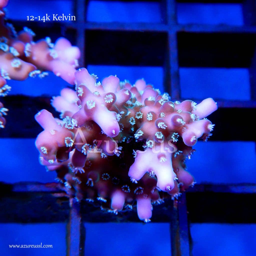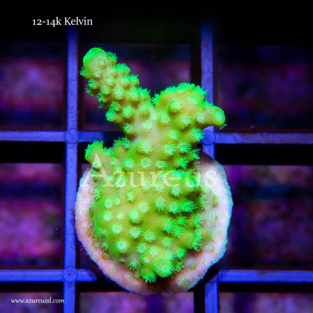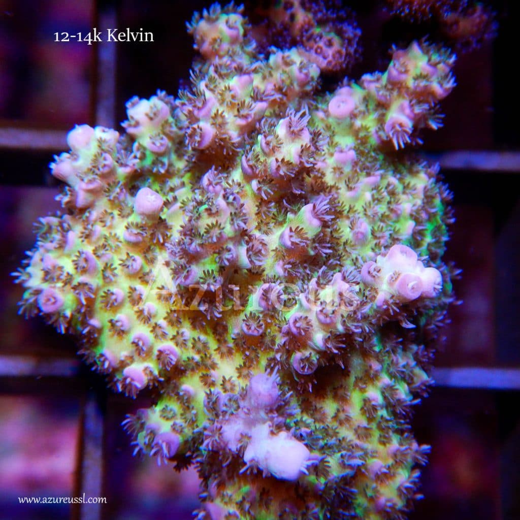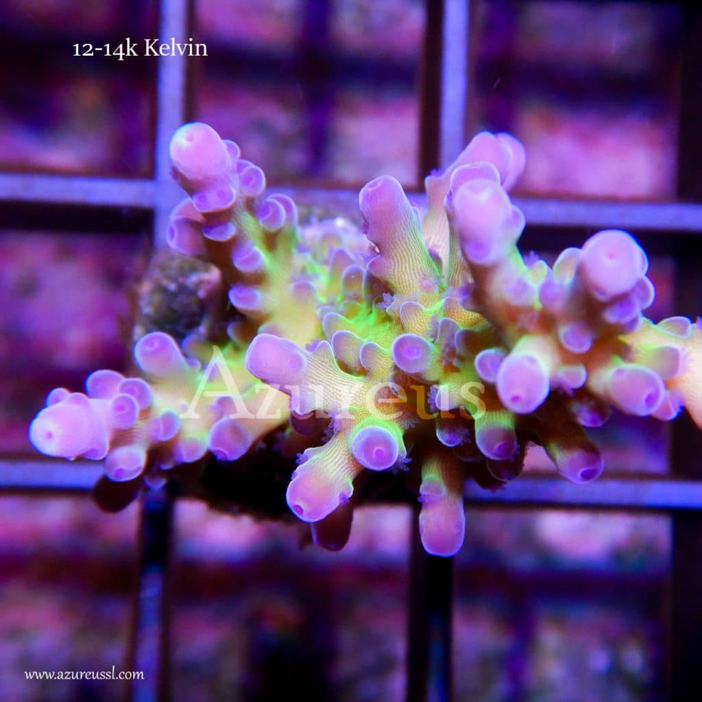 En Azureus mantenemos corales «madre» de colores imponentes para luego poder ofrecer corales muy resistentes y adaptados a la vida del acuario (más tolerantes con las variaciones del agua que los que vienen del océano).
