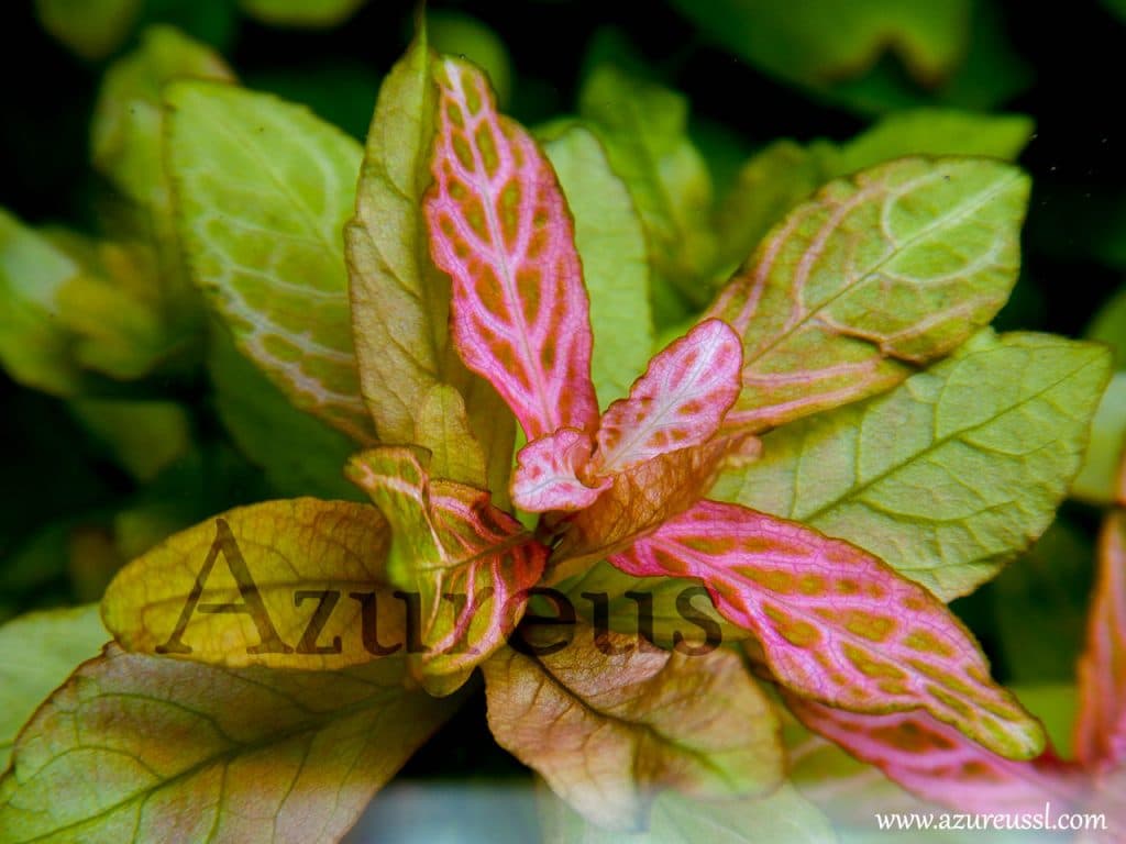 Las Hygrophilas rosanervig se llaman así porque los brotes de crecimiento en las hojas nuevas tienen un espectacular rosa – rojo que contrasta de una manera muy peculiar con las hojas de alrededor. Son plantas muy fáciles y que enraizan mucho, que pueden llegar a crecer 1 cm al día con una cantidad de abono adecuada. Al añadir CO2 al acuario además conseguiremos que el rojo resalte mucho más al ser más potente.